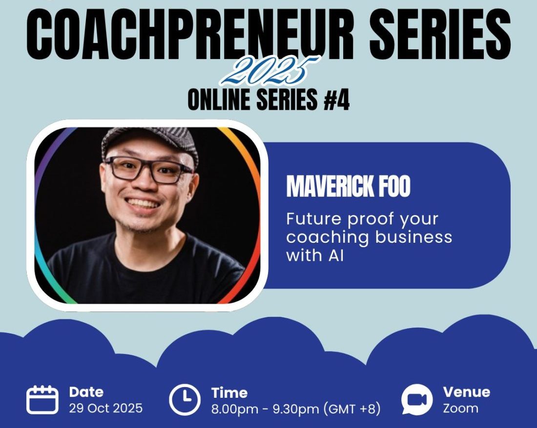 Join us for our next exclusive Coachpreneur webinar featuring the incredible Maverick Foo as he presents the groundbreaking AI Advantage Framework.